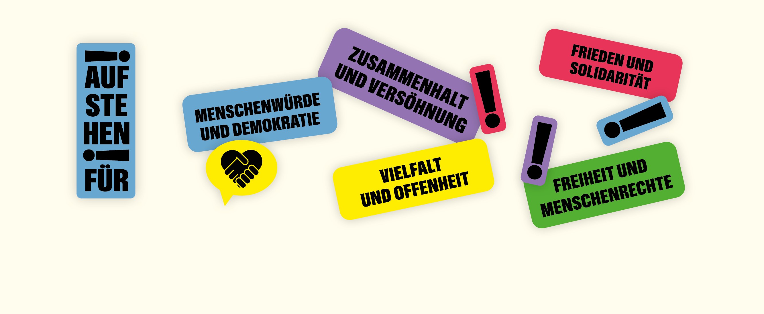 Aufstehen für Menschenwürde und Demokratie - und gegen politischen Extremismus - das ist heute wichtiger denn je. Wir haben darüber hinaus weitere Ziele entwickelt, für die es - aus unserem christlichen Menschenbild heraus - wichtig ist, sich einzusetzen. Wir stehen auf für: