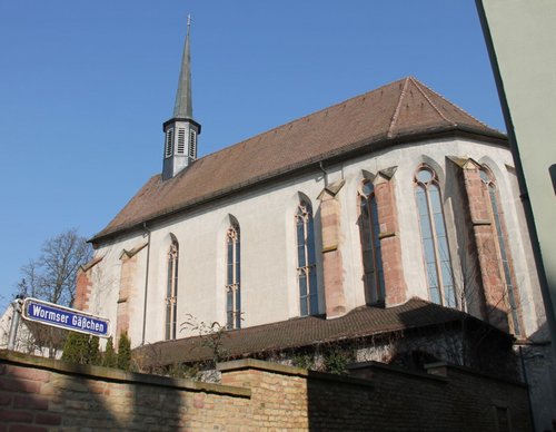 Die Kirche des ehemaligen Dominikanerklosters stammt aus dem 13. Jahrhundert. 1689 wurde sie mit einem Großteil der alten Reichsstadt von den Truppen Ludwigs XIV. zerstört. Im Zug der Wiederbesiedlung der verödeten Stadt kam es 1698 zum Wiederaufbau des Dominikanerklosters, von der Kirche wurde allerdings nur der Chor wiederhergestellt. Schon 1794 erlitt die Kirche durch die französischen Revolutionstruppen erneut Verwüstungen. 1802 nach dem Untergang des alten Bistums Speyer wurde das Kloster schließlich versteigert. 1830 konnte das Gebäude zurückgekauft und in der Folgezeit mit der von August von Voit umgestalteten Kirche zu einem Konvikt, einem Studienseminar für künftige Priesterkandidaten, ausgebaut werden. 1935 baute der Architekt Albert Boßlet nach Westen hin ein zusätzliches Joch an die Kirche.