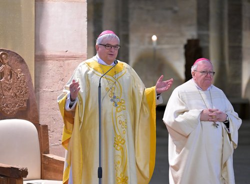 Bischof Wiesemann erinnerte in seiner Predigt daran, dass „unsere Demokratiegeschichte uns die längste Friedenszeit der ganzen jüngeren Menschheitsgeschichte beschert“ habe. Darauf dürfe man stolz sein, so Wiesemann, insbesondere auf das, „was wir mit der Geduld europäischer Aussöhnung selbst von Erzfeinden, mit der Mühsal demokratischer Entscheidungswege und gemeinsamen Aufbaus geschafft haben“.