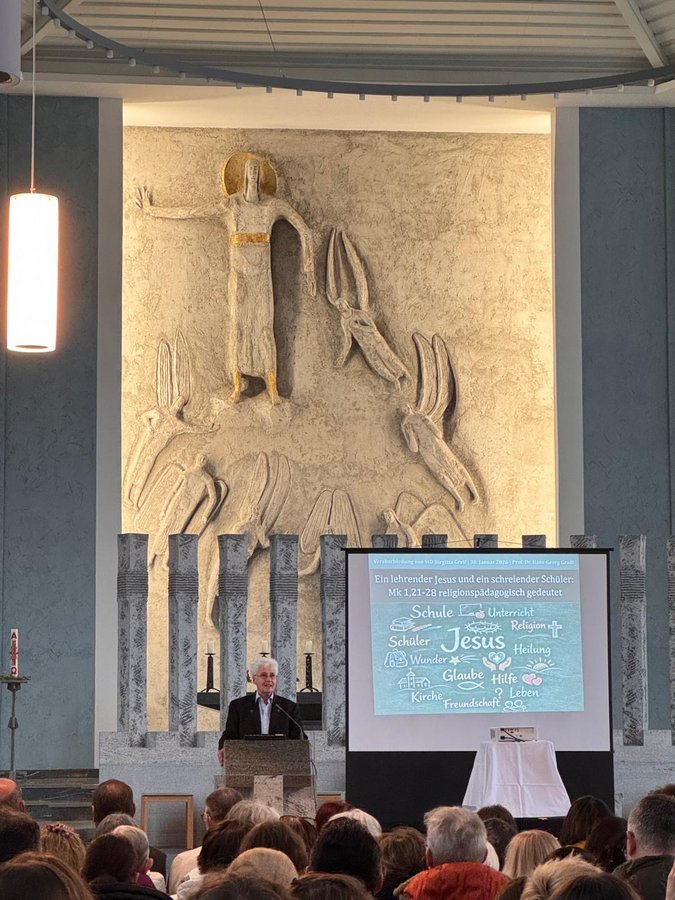 Den Auftakt machte eine religionspädagogische Deutung von Prof. Dr. Hans-Georg Gradl, Theologische Fakultät Trier, der zum Thema „Ein lehrender Jesus und ein schreiender Schüler (Mk 1,21-28)“ anschaulich und praxisbezogen sprach. Professor Gradl sprach auf besondere Einladung von Birgitta Greif als langjähriger gerngesehener Impulsgeber für die Religionslehrertagungen des Bistums.