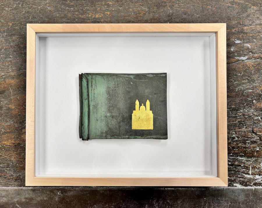 Plättchen mit Dom in Kupfer, blattvergoldet: